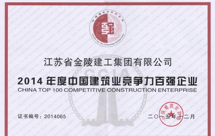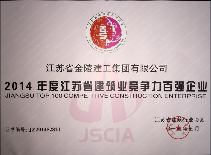 2014年度江蘇省建筑行業(yè)競爭力百強(qiáng)企業(yè)證書