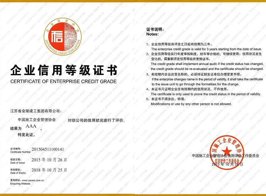 2015企業(yè)信用等級(jí)證書AAA