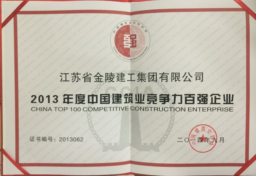 2013年度中國建筑業(yè)競爭力百強(qiáng)企業(yè)證書