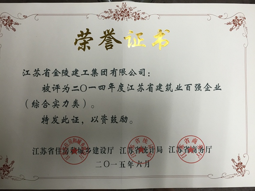 2014年江蘇省建筑業(yè)百強(qiáng)企業(yè)(綜合實(shí)力類)獎(jiǎng)狀