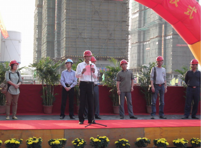 十月金秋,秋高氣爽,工地鮮花錦簇,鼓樂齊鳴,10月10日下午4時(shí)18分,我公司濱江和園保障房項(xiàng)目部舉行了隆重?zé)崃业?8層住宅樓封頂儀式。 該工程由6棟18層、5棟28層住宅樓及地庫(kù)組成,共17.5萬(wàn)平方米,分三批次開工,是浦口區(qū)最大的保障房工程。6棟18層住宅樓作為首批開工項(xiàng)目,自今年3月份開工以來(lái),項(xiàng)目部全體管理人員,克服困難,比總進(jìn)度計(jì)劃提前11天完成封頂。 浦口區(qū)房產(chǎn)局副局長(zhǎng)劉飛,浦口區(qū)保障房建設(shè)發(fā)展有限公司總經(jīng)理薛松,南京堃正工程項(xiàng)目管理有限公司總經(jīng)理左文清及我公司副書記張正山等同志出席了典禮儀式。儀式由代建方江蘇亞東建設(shè)發(fā)展集團(tuán)有限公司浦口分公司總經(jīng)理胡洪軍主持。 在致辭中,胡洪軍對(duì)我項(xiàng)目部前期的工作給予充分的肯定,對(duì)提前封頂取得階段性成果表示祝賀,并希望我項(xiàng)目部在下階段工程中,發(fā)揚(yáng)成績(jī),取得巨大勝利。 左文清同志代表監(jiān)理公司發(fā)言,他對(duì)項(xiàng)目部的前期工作表示滿意,并表示在今后工作中,繼續(xù)為實(shí)現(xiàn)保障房工程達(dá)到優(yōu)質(zhì)高速的目標(biāo)提供服務(wù)。 張正山同志代表我公司,向浦口區(qū)有關(guān)主管部門、代建方及監(jiān)理單位對(duì)工程給予的關(guān)心和支持表示感謝,并表示在今后將繼續(xù)努力,兢兢業(yè)業(yè),建造讓人民放心滿意的保障房工程,為浦口區(qū)民生工程做出更大貢獻(xiàn)。 在喜慶的樂曲聲中,封頂儀式圓滿結(jié)束!