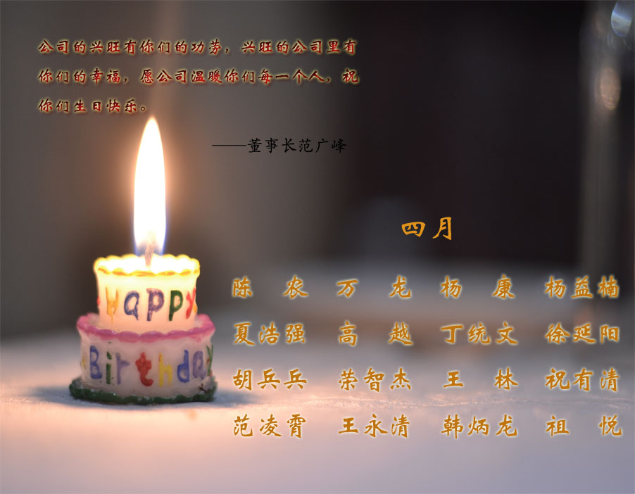 【生日祝福】恭祝4月生日的員工生日快樂!